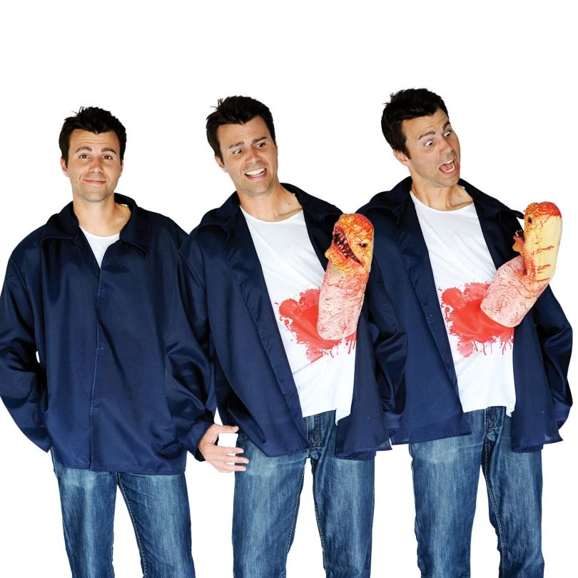 Be like Kane in the Alien movie as this nasty little guy complete with blood and sharp teeth bursts out of your chest. This unique part costume, part illusion is guaranteed to get attention and really gross people out.