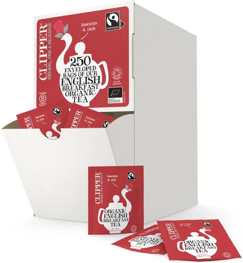 Clipper Organic English Breakfast majestic tea blend starring full-bodied Assam and wonderfully delicate Ceylon for a refreshing finish. Best enjoyed with the morning papers. The tea is blended and packaged at the Clipper tea factory in southern England.