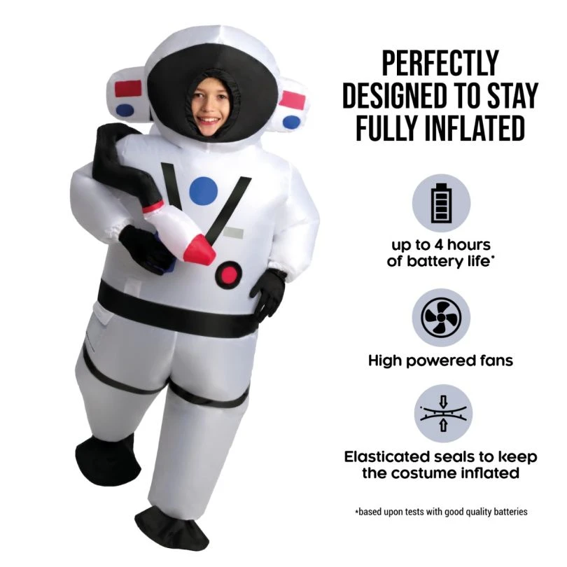 Your child can take a giant leap for mankind with the fantastic kids’ astronaut inflatable costume. This is no ordinary inflatable costume though, it comes with a soundchip that lets your child make some awesome space noises to go with their outfit. This inflatable costume is perfect for any child with a love for space exploration and adventure.