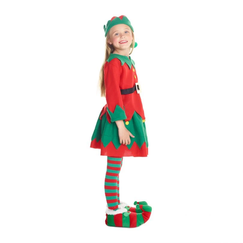 Your child can become one of Santa’s assistants this holiday season with the kids’ Christmas elf costume. This cute outfit is perfect for your son or daughter to wear for your Christmas party or to pose for the family Christmas card. This costume includes a detailed top, skirt and hat.
