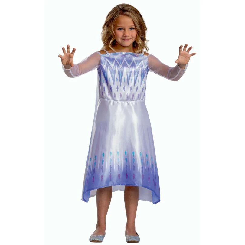 The kids’ Elsa standard costume allows any little girl to step into the shoes of the much-loved character from Disney’s smash hit film, Frozen. This officially licensed Disney dress is based on the look Elsa had in the iconic movie.