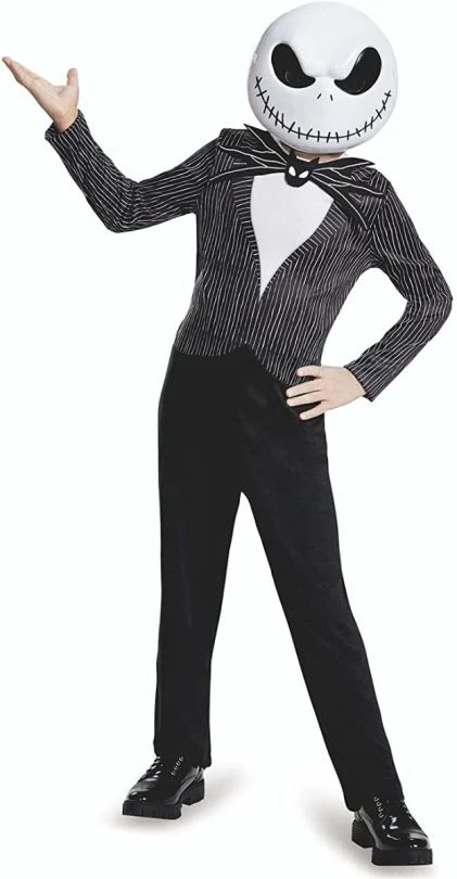 Become the iconic Jack Skellington from The Nightmare Before Christmas with our official Disney Costume for Kids. Includes jumpsuit, bow tie and mask. High-quality black and white jumpsuit with a bat bow tie with printed details and a traditional plastic moulded half mask. It will make your little one look like just Jack from The Nightmare Before Christmas.