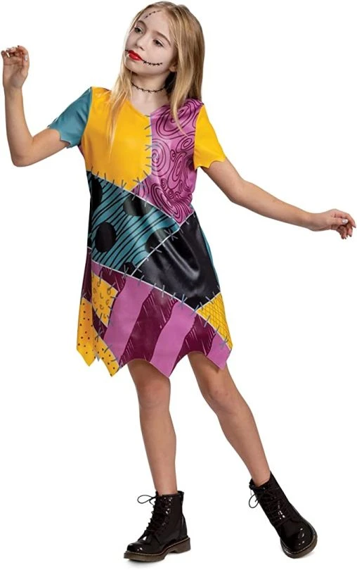 The kids’ Sally Skellington standard costume is based on the iconic character from Disney’s much-loved movie; the Nightmare Before Christmas. This officially licensed costume lets your child step into Sally’s shoes in time for both Halloween and Christmas.