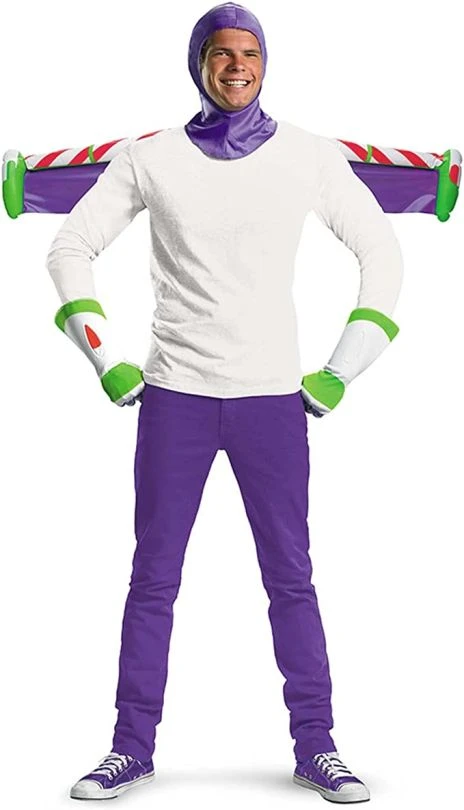Go to Infinity and Beyond as Buzz Lightyear with its Official Disney Costume Kit; includes a Buzz Lightyear hood, gloves and inflatable jet pack. High-quality, comfortable, durable, and easy-to-wear outfit, based on the Toy Story movie.