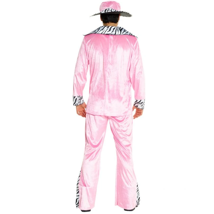 The menโs pimp daddy pink costume brings all of the fun and funkiness of 70โs exploitation cinema to any fancy-dress occasion. Stick on a funky baseline and confidently strut your way into any party you attend, particularly if itโs a decades party. The pimp daddy black costume comes with everything you need to get funky: a huge-collared jacket with zebra print, matching flared trousers and an eye-catching hat.