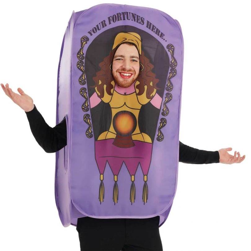 The women’s fortune teller booth is a hilarious novelty costume that is guaranteed laughs and attention at any event you might wear it to. The best thing is, this costume also sorts your conversation all night too, as you can simply spend the evening making up rubbish predictions for all of the other partygoers. This downright silly women’s fortune teller booth costume is simple to wear; all you have to do is pop it over your head and look through the face hole.