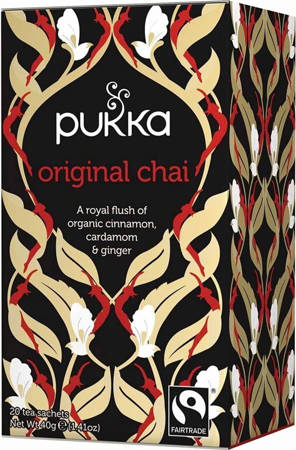 Pukka Original Chai made with organic cardamom, licorice, ginger and cinnamon. Delicious with or without milk and honey.