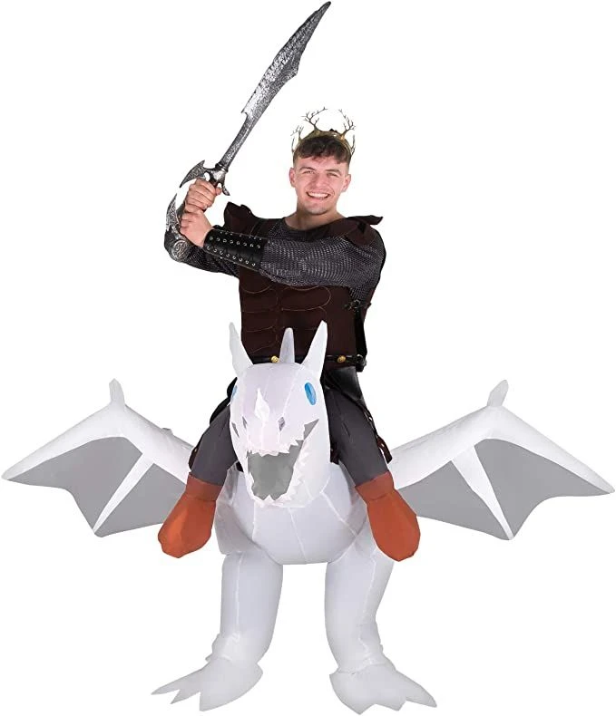 Everyone loves dragons, so the Ride On white dragon inflatable costume is a sure-fire winner of a fancy-dress outfit for virtually any occasion. Regardless of whether itβs for Halloween, a party or just because you feel like riding a dragon, this costume is great fun and a real head-turner.