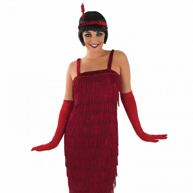 Step back into the roaring 20’s and the world of the Great Gatsby with the women’s 20’s red flapper girl dress costume. Fringed and fierce, this flapper dress and accessories are perfect for decade-themed parties and Halloween events too. The women’s 20’s flapper girl costume includes: dress, 20’s style gloves and headdress.