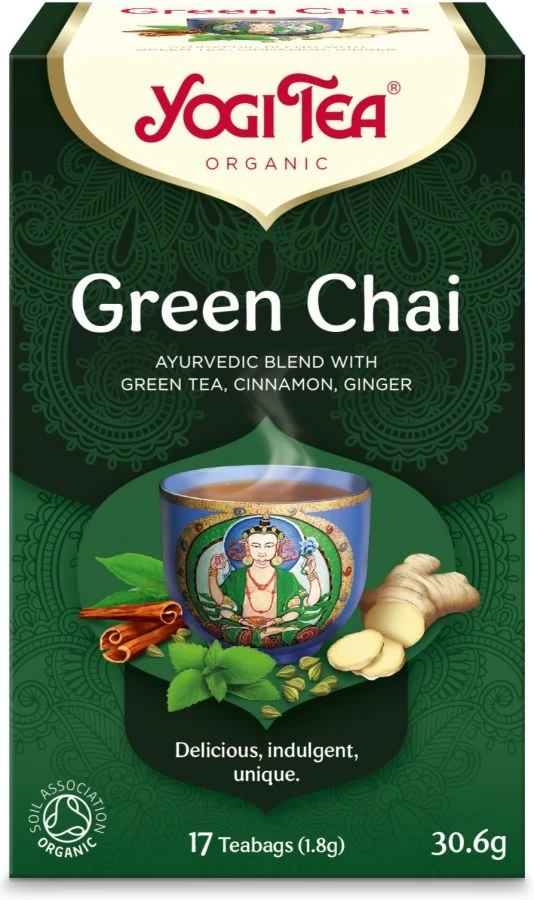 When such popular drinks as green tea and chai come together in one YOGI TEA®, the result is a truly special trinity: the green tea invigorates the body, chai spices soothe the soul, and a new experience fulfils the mind.